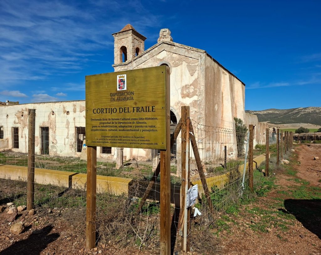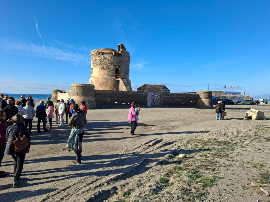 La jornada continuó con la visita al Cortijo del Fraile, uno de los símbolos más reconocibles del patrimonio almeriense. En este enclave intervinieron ambas asociaciones, destacando su papel decisivo en la defensa del cortijo, desde la denuncia de su estado ruinoso hasta la consecución de su protección legal y posterior adquisición pública.