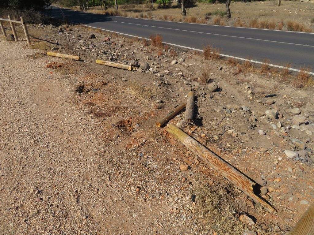 Uno de los tramos destrozó unos 10 metros de valla y el otro unos 6 metros, aproximadamente. Ambos están muy cercanos entre sí y a unos 100 m. antes de las primeras viviendas de El Pozo de los Frailes, según se llega desde San José.