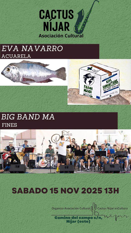 Cactus Níjar esCultura ha programado para este sábado, 15 de noviembre, a partir de las 13,30 horas (apertura de puertas 13 horas), una velada con las habituales propuestas musicales y de pintura.