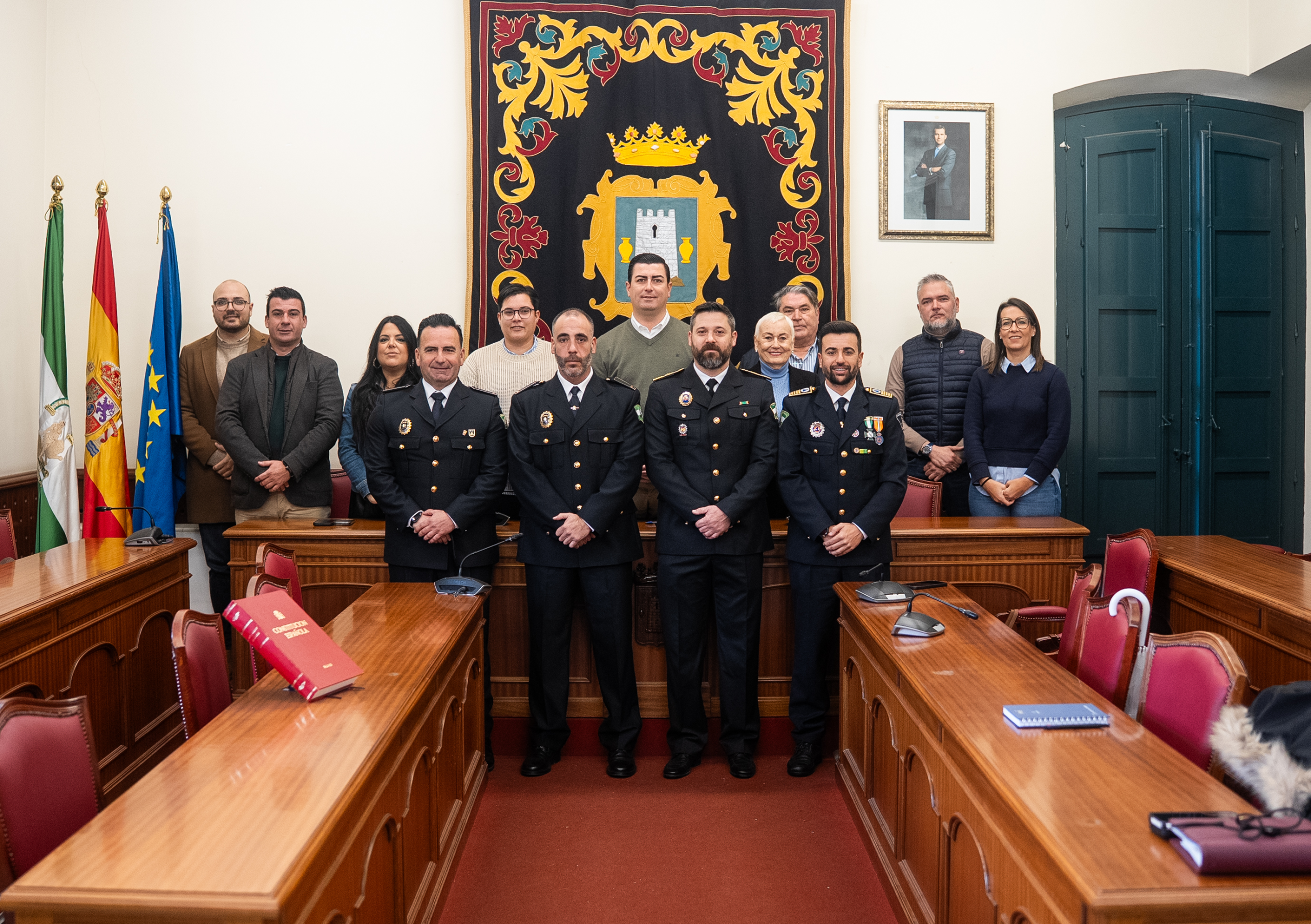 El salón de plenos del Ayuntamiento de Níjar ha acogido el acto de toma de posesión del inspector jefe de la Policía Local, Antonio Robles; de los oficiales de Policía Local, David Moya e Imanol Alfonso; y del técnico auxiliar de Protección Civil y Emergencias, Ángel de Prado.