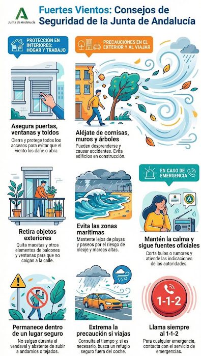 Ante los fuertes vientos, consejos de seguridad de la Junta