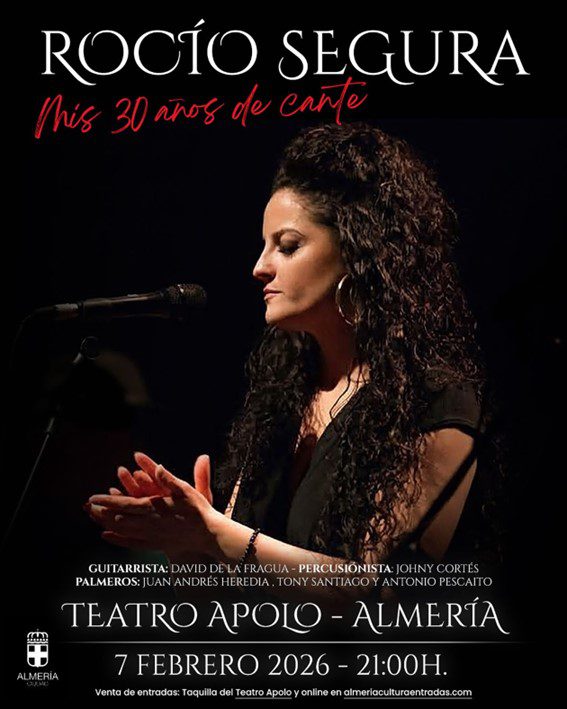 “Son treinta años de cante. Treinta años de escenarios. Treinta años de amor, pasión y compromiso con el flamenco y el arte. Se dice pronto pero son tantas y tantas vivencias, de compartir, de viajes y escenarios…”, evoca una emocionada Rocío Segura que, para la velada tan especial estará acompañada por David de la Fragua a la guitarra, Johny Cortés a la percusión y Juan Andrés Heredia, Tony Santiago y Antonio Pescaíto a las palmas, que pondrán todo de su parte para hacer de la noche algo inolvidable.