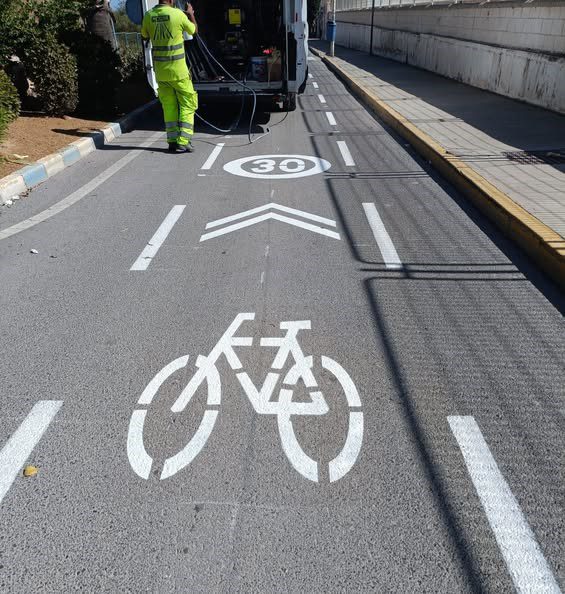 Los trabajos, que comenzaron a principios de semana y se darán por concluidos este domingo, consisten en señalización vertical y horizontal en las calzadas para configurar un itinerario ciclista que enlaza el final del carril bici existente en el Paseo Marítimo con Avenida Faro Mesa Roldán, Ramblica del Pozo, Calle Carril, Avenida Almería y Avenida Garrucha para subir desde allí hasta el IES Juan Goytisolo.
