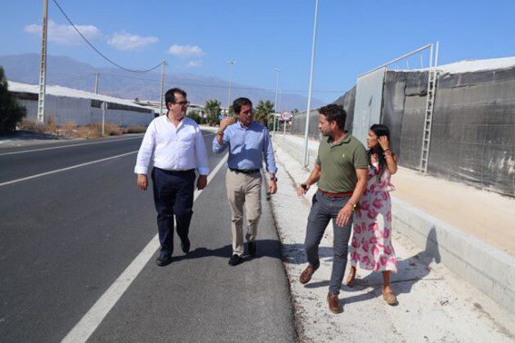 El alcalde de El Ejido, Francisco Góngora, y el diputado de Fomento, Antonio J. Rodríguez, han visitado las obras que están permitiendo el ensanche de esta vía en un importante tramo de su trazado en la parte que unen Balerma y la A-7. En concreto, esta actuación, que cuenta con 900.000 € va a estar financiada con cargo al Plan Viario de la Diputación Provincial.