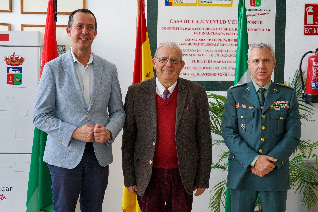 La Casa de la Juventud y el Deporte de Vícar ha sido el escenario elegido para celebrar la Junta Local de Seguridad de esta localidad almeriense. Presidida por el alcalde Antonio Bonilla junto al subdelegado del Gobierno, José María Martín Fernández, ha contado también con la presencia del Coronel Jefe de la Guardia Civil, José Antonio Carvajal Cantarero; el Comandante de la Guardia Civil en El Ejido, Jesús Ricardo Mira Domínguez; el Teniente del puesto de Guardia Civil en Vícar, José Manuel Vargas; e Isabel Sánchez Rubio, en representación de Policía Nacional, así como el Jefe de Policía Local, Tomás Zamora y el concejal de Seguridad Ciudadana, Evaristo López.