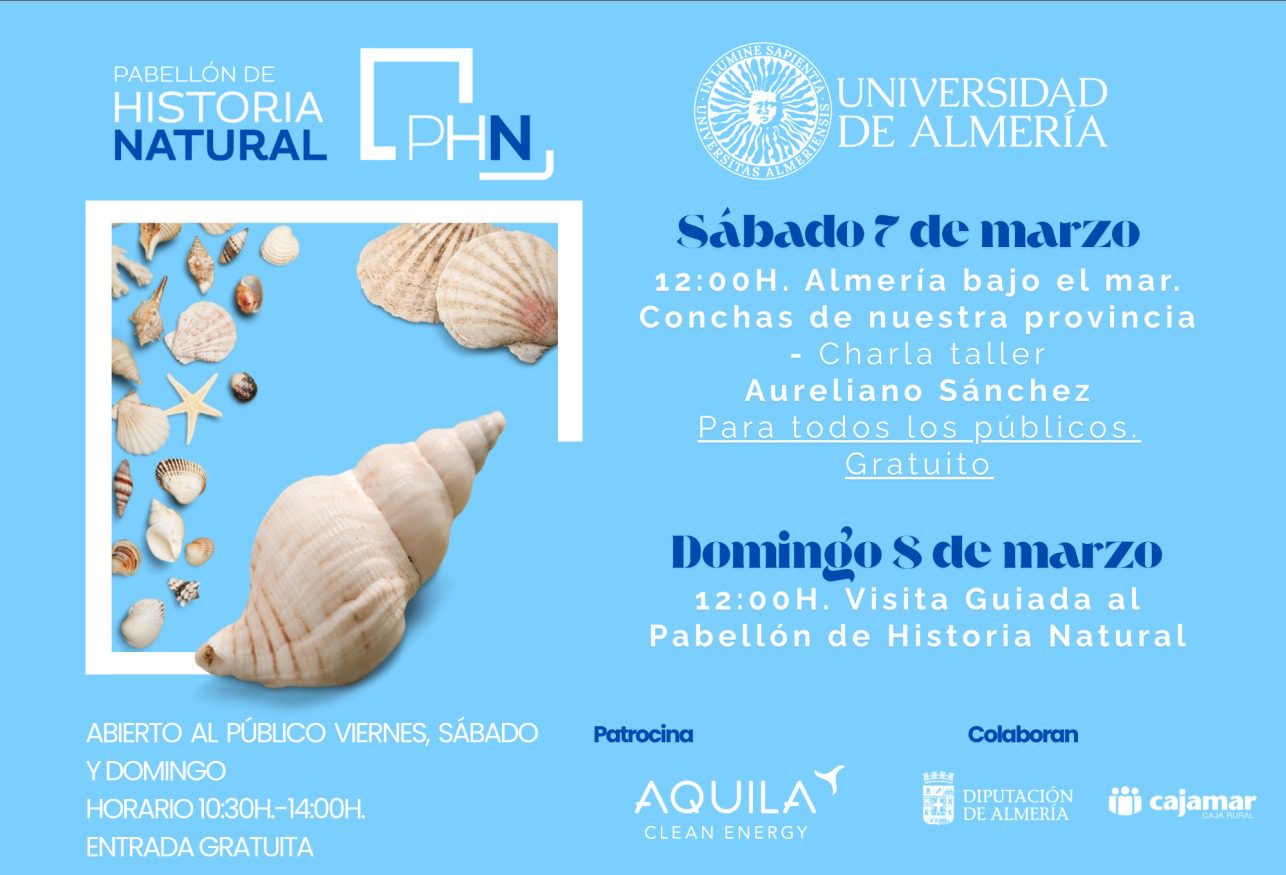 El Pabellón de Historia Natural (PHN) de la Universidad de Almería acogerá este fin de semana dos actividades divulgativas abiertas al público para acercar a los visitantes a la riqueza natural de la provincia, tanto bajo el mar como en su extraordinaria diversidad geológica y biológica.