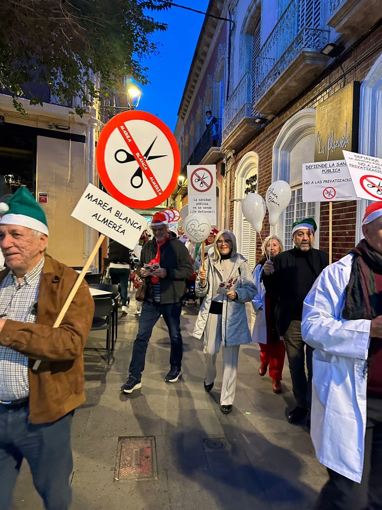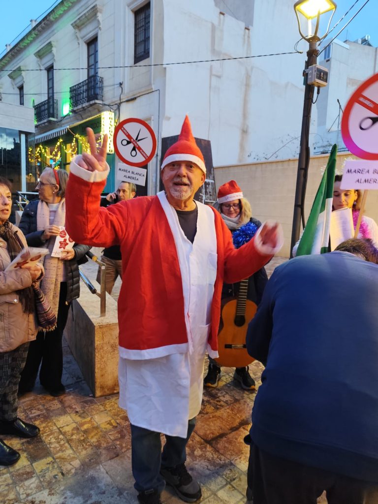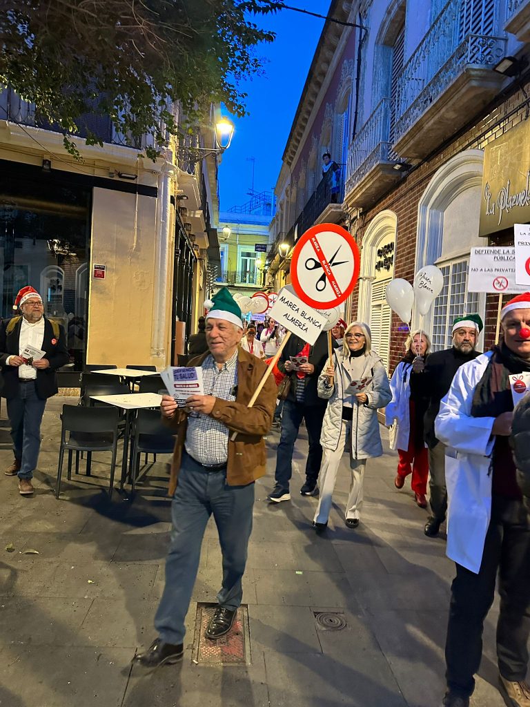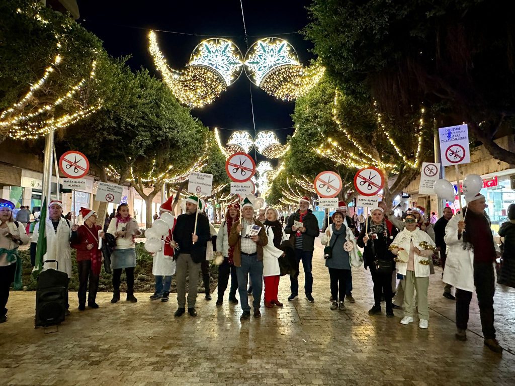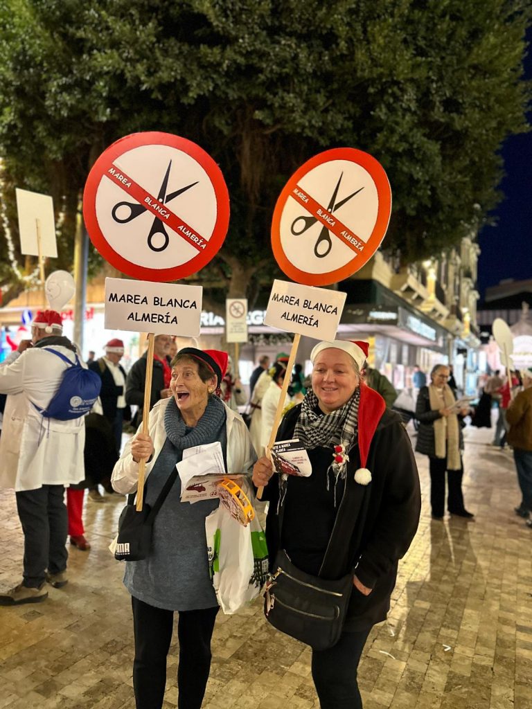 La Marea Blanca de Almería realizó un pasacalles divertido y reivindicativo por el centro de Almería, todas las fotos