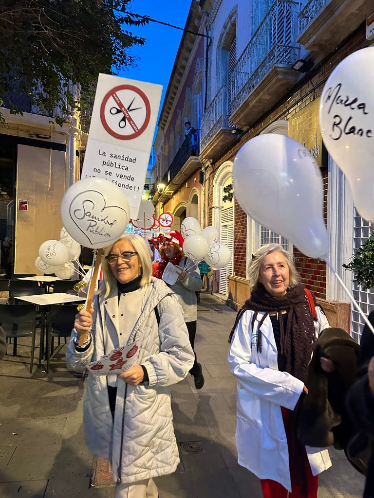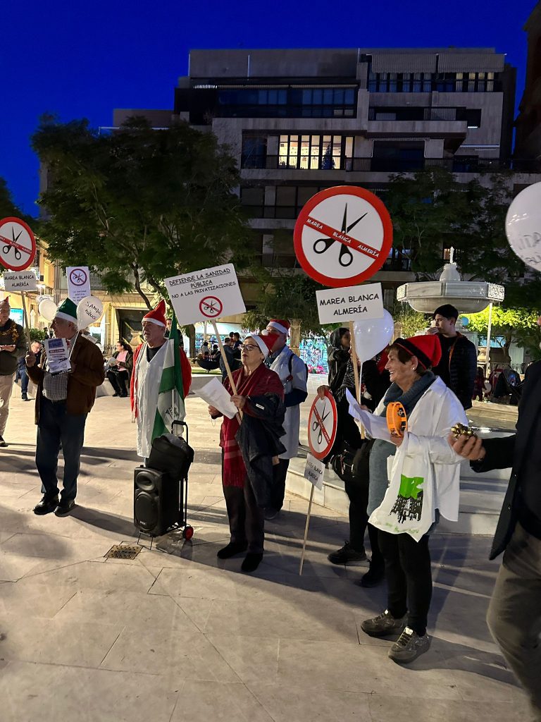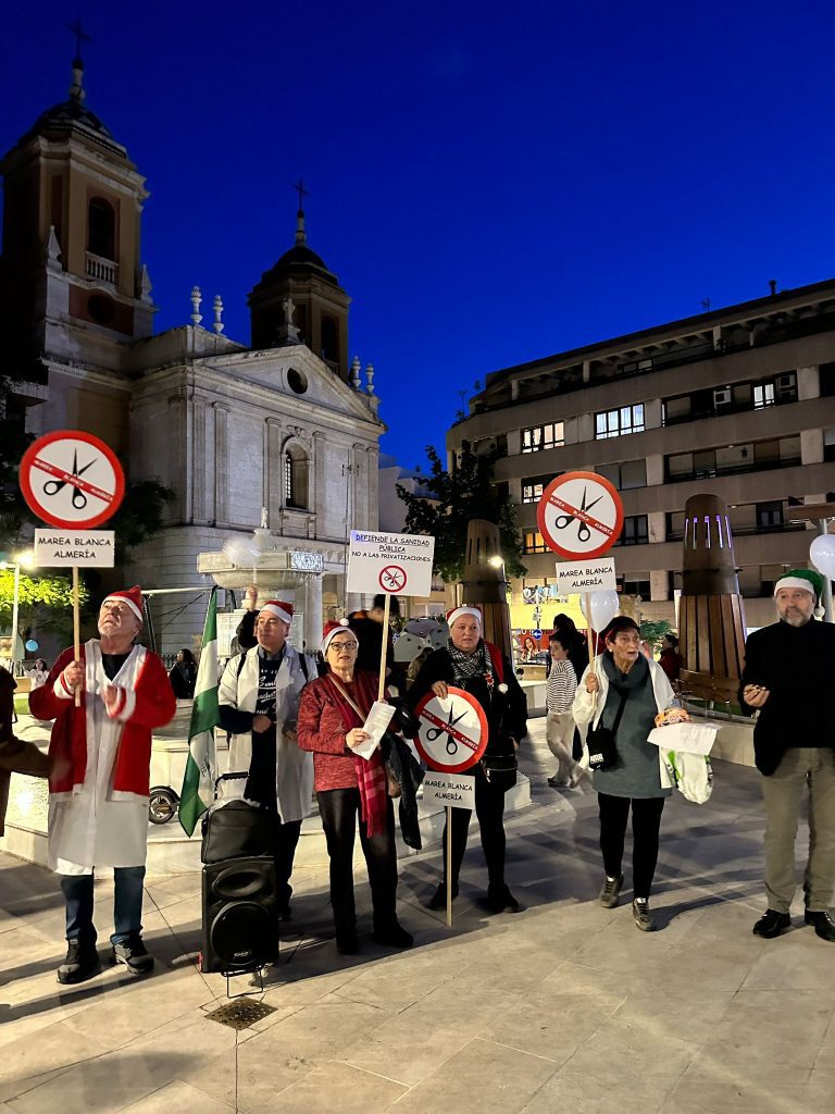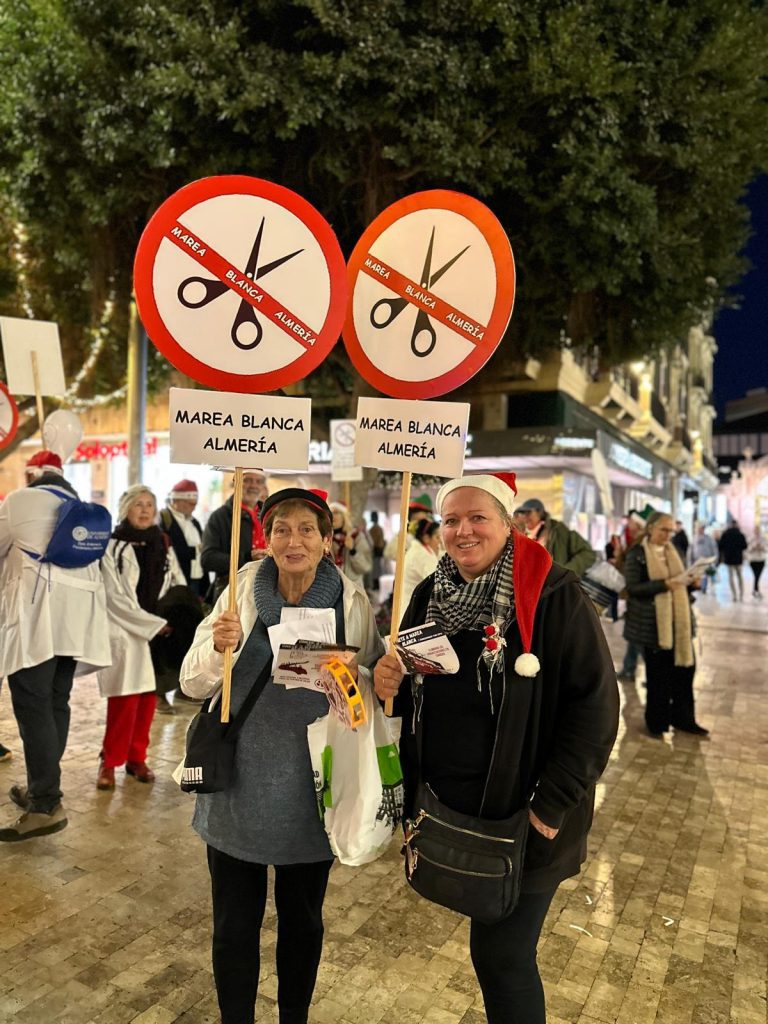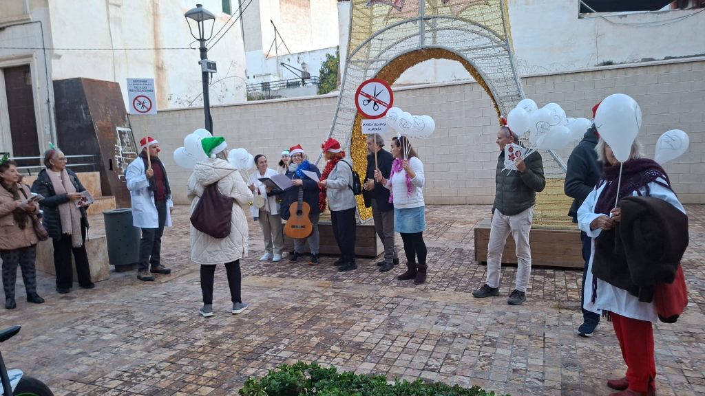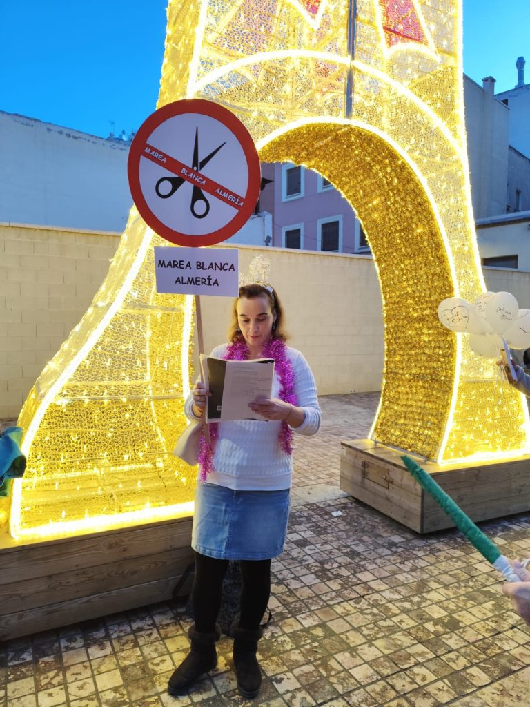 La Marea Blanca de Almería realizó un pasacalles divertido y reivindicativo por el centro de Almería, todas las fotos