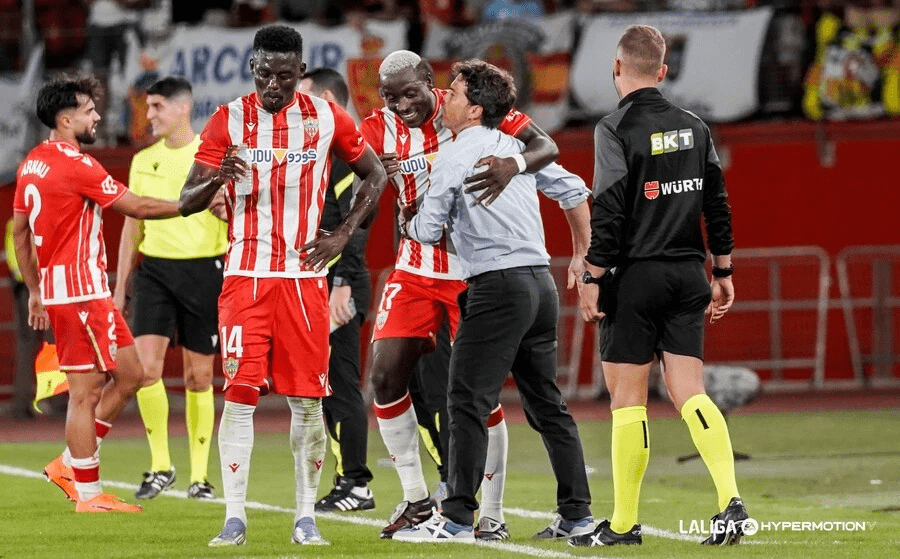 El Almería recupera sanciones positivas ante su afición con una victoria sobre el Zaragoza y muchos goles. La victoria del Almería sobre Nueva el Real Zaragoza, un resultado que, unido al triunfo de la Real Sociedad B, deja a los maños en lo más bajo de la clasificación y a Gabi, con casi los dos pies fuera tras haber sumado sólo una victoria en nuevas jornadas.
