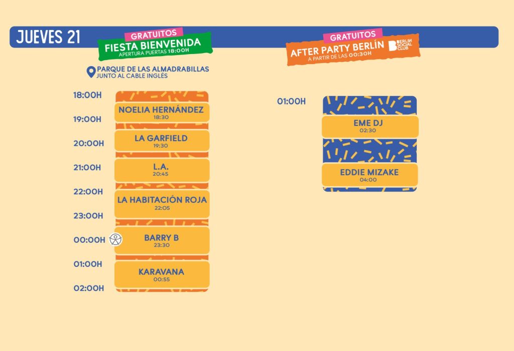 Todo ello organizado por Crash Music y el Área de Cultura, Tradiciones y Fiestas Mayores del Ayuntamiento de Almería, con el apoyo de Diputación Provincial con Costa de Almería y Sabores Almería, Estrella de Levante, Schweppes, Brugal y Cupra Indalo Motor.