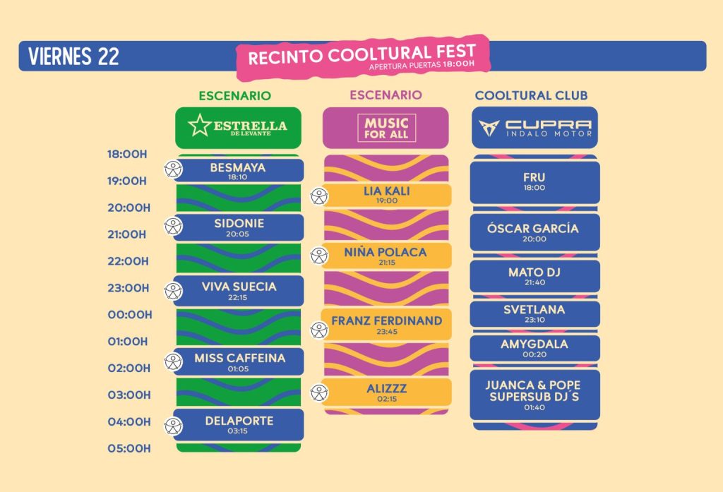 Cooltural Fest será el primer festival de todo el país que cuente en esta edición con todos los conciertos subtitulados y, además, una decena de ellos contarán con interpretación en lengua de signos (Viva Suecia, Lia Kali, Sidonie, Love Of Lesbian, Maldita Nerea, Siloé, Duncan Dhu, Raule y Zahara en el principal; Barry B en la fiesta de bienvenida y Melifluo en el escenario playa).