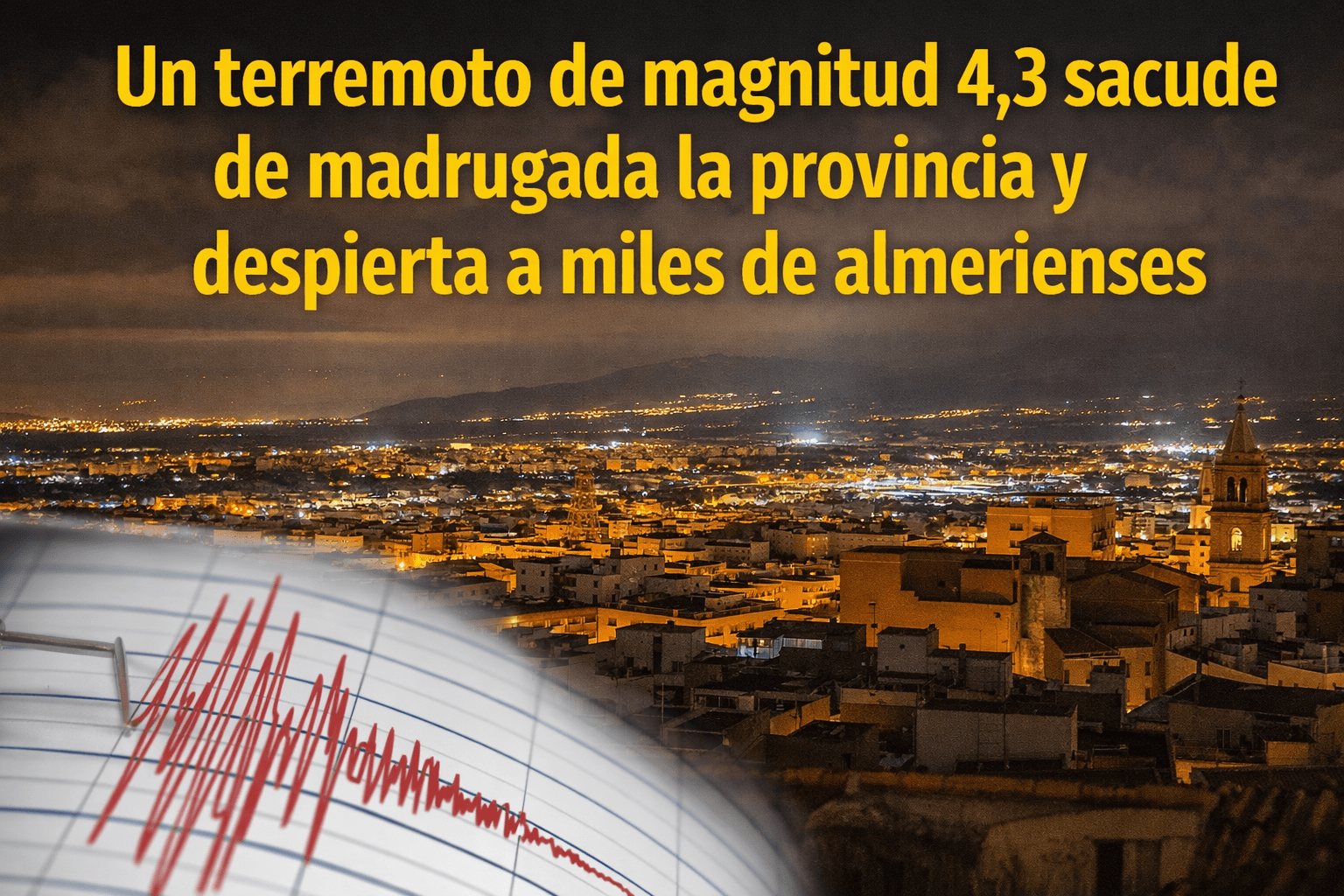 Un seísmo de magnitud 4,3 sorprendió a la provincia de Almería en la madrugada de este lunes, generando momentos de inquietud entre la población al sentirse con claridad en numerosos municipios. El temblor se produjo a las 00:55 horas y tuvo su epicentro en las inmediaciones de Tabernas, a poca profundidad, circunstancia que favoreció que el movimiento fuera percibido con intensidad.