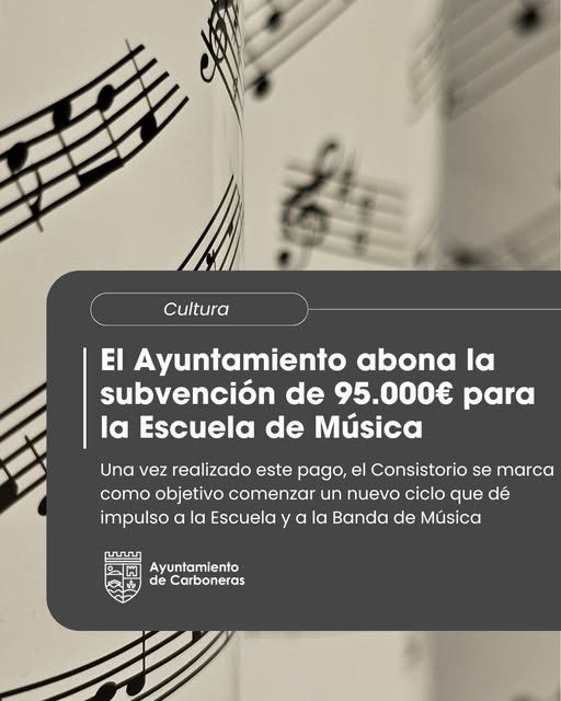 El Ayuntamiento de Carboneras ha regularizado la situación económica de la Escuela de Música de la localidad con el pago de los 95.000 euros correspondientes al convenio de 2025 que se mantiene con la Asociación Amigos de la Música de Carboneras, entidad encargada de la gestión de esta formación musical. El pasado 30 de diciembre, la Junta de Gobierno Local aprobó el reconocimiento del gasto, lo que se comunicó a la asociación, y cuyo pago se hizo efectivo el pasado 5 de enero.