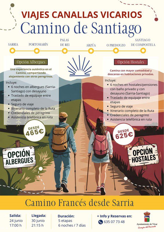 Ambas opciones incluyen el traslado desde Vícar hasta Sarria (y regreso desde Santiago de Compostela), traslado del equipaje entre etapas, seguro de viaje, itinerario completo de la ruta, credenciales del peregrino y asistencia telefónica en ruta. En cuanto al hospedaje, tanto la opción de albergue como la de hostal incluyen el desayuno. En total, esta imperdible experiencia consta de 7 días y 6 noches donde habrá espacio para la convivencia, la filosofía, el deporte y la cultura.