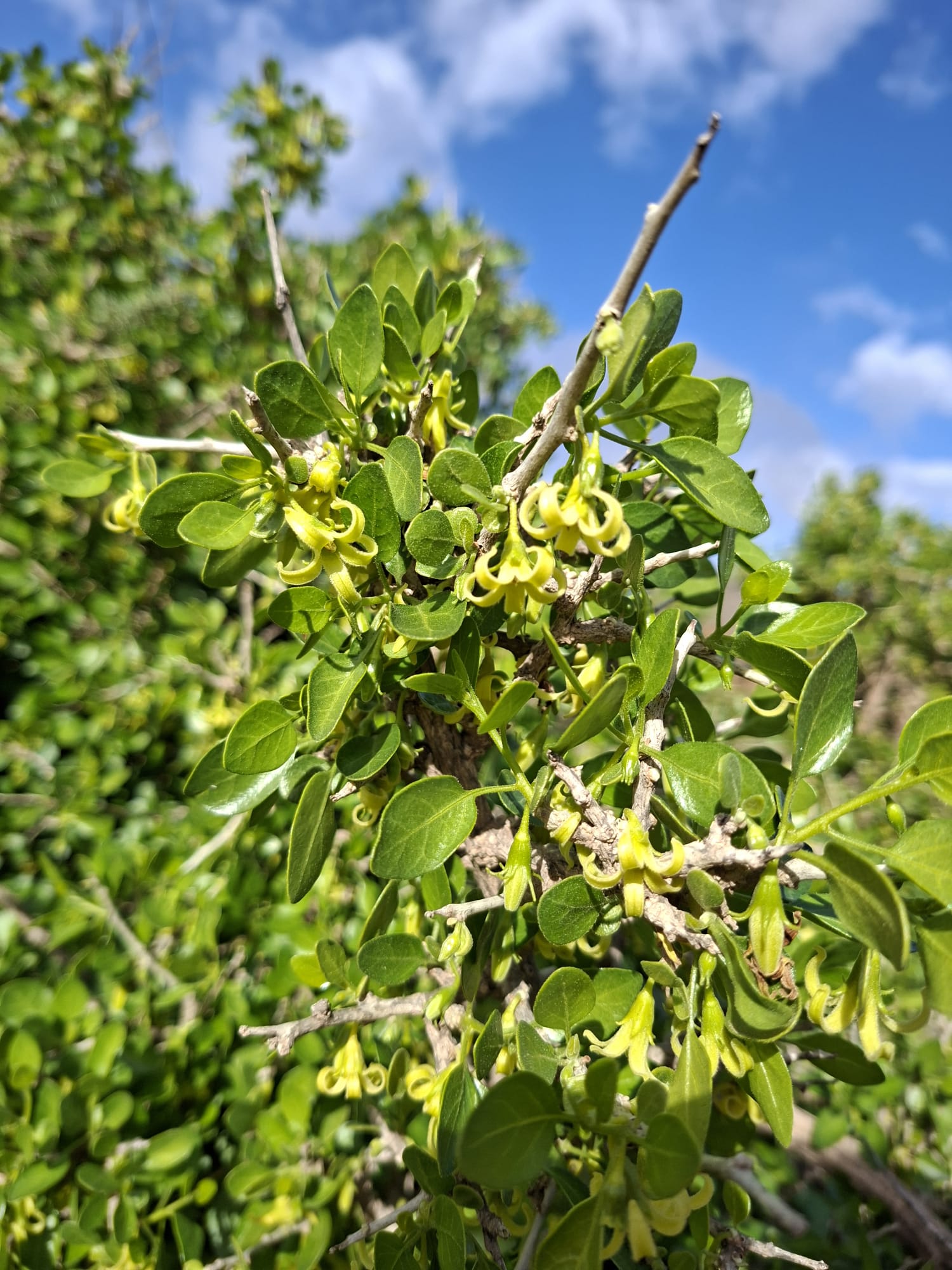 El oroval (Withania frutescens) es un arbusto originario del norte de África y zonas cercanas del Mediterráneo que puede alcanzar más de un metro de altura. Se caracteriza por sus hojas verdes de textura aterciopelada, pequeñas flores amarillentas y unos frutos esféricos de color naranja o rojizo cuando maduran.