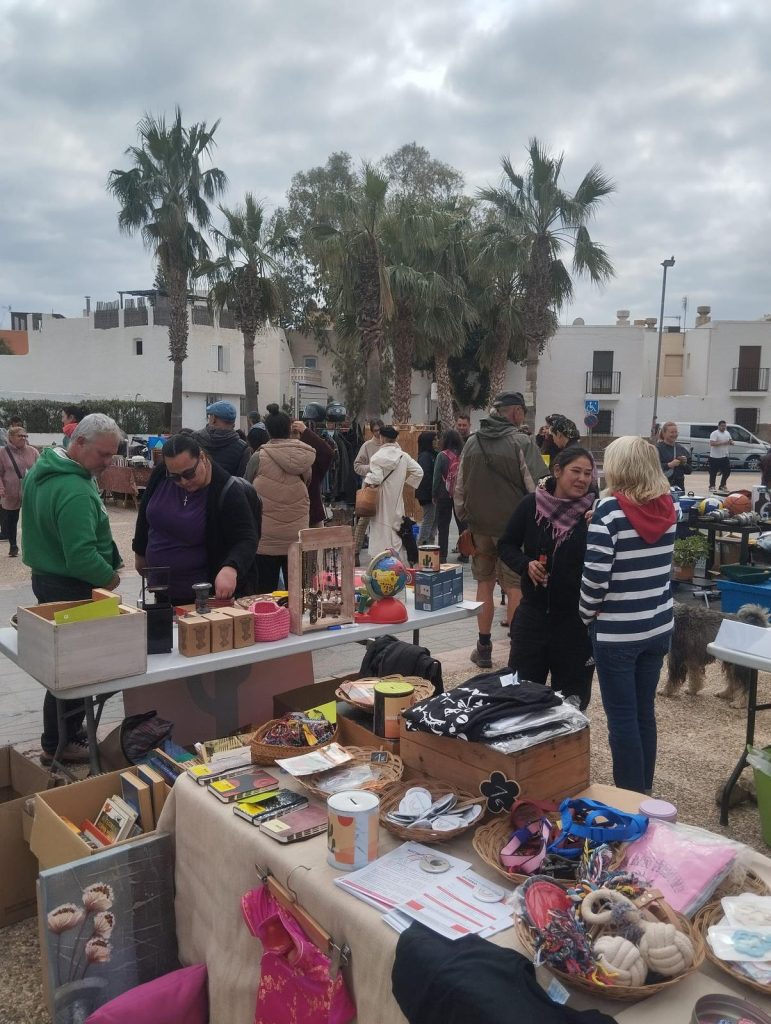 El vecindario sacaba algunos trastos a la calle, ropa seminueva, cuadros, libros, lámparas, ¡canicas!, podías encontrar cualquier capricho y ofrecer otro, un relevo de ilusión. También algunos comercios llevaron sus ofertas para el vecindario a muy buenos precios. El caso era participar en este encuentro vecinal que nos ha dejado tan buena mañana.