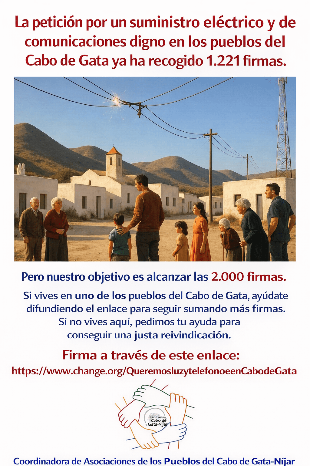 Apoya con tu firma la petición de un suministro digno de luz y teléfono en los pueblos de Cabo de Gata